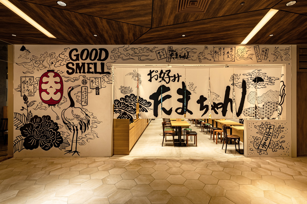 出典:お好み たまちゃん 渋谷スクランブルスクエア店 | TRANSIT GENERAL OFFICE INC.|ファッション、音楽、デザイン、アート、食をコンテンツに遊び場を創造する空間創造総合企業