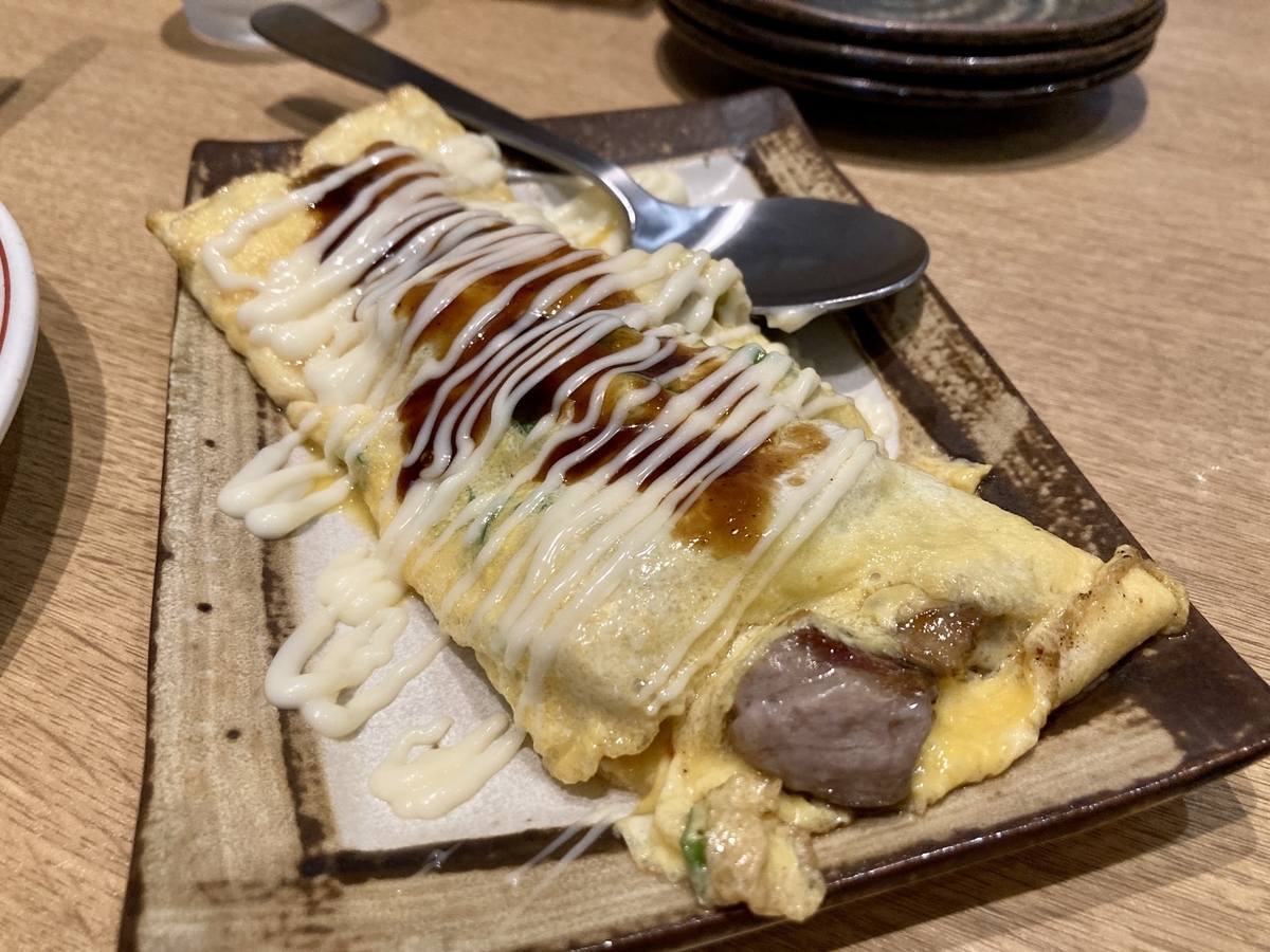 中でもオススメは、たまちゃんデラックス焼き(具材全部入り)と激旨!油かす焼きうどん(具は油かす+豚+イカ)。この2品は、必須かと思います。