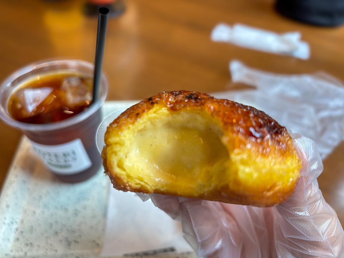 中から溢れ出す濃厚なカスタードクリームと、表面のカラメルのパリッと感のコントラストが絶妙すぎる!!✨